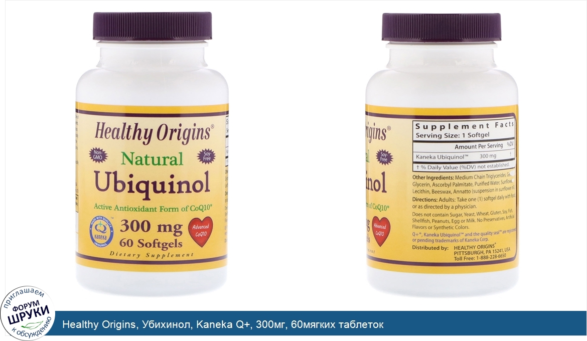 Натуральный продукт. Не содержит ГМО. Не содержит сои. Коэнзим Q10 в форме активного антиоксиданта. C высококачественным убихинолом Kaneka Q+. Улучшенный коэнзим Q10. Пищевая добавка. Убихинол от Healthy Origins ...