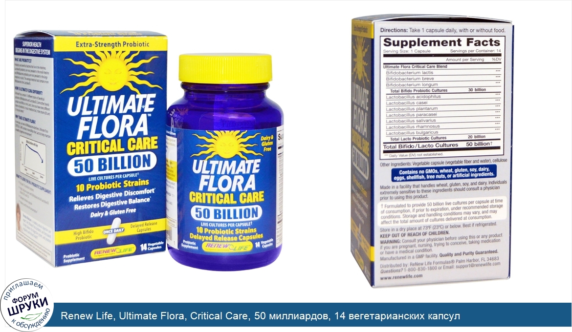 Друзья, если у вас есть отзыв/дополнение/комментарий/вопрос относительно Renew Life, Ultimate Flora, Critical Care, 50 миллиардов, 14 вегетарианских капсул - напишите его ответом в эту тему (это будет полезно всему сообществу в целом и вам в отдельности).