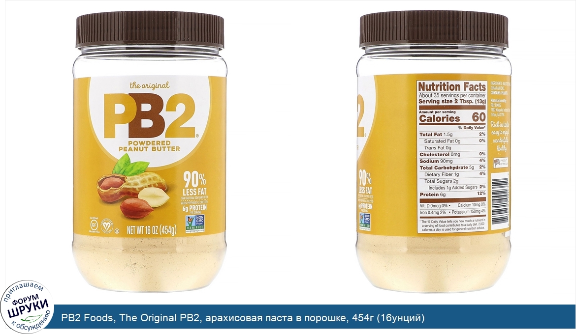 Друзья, если у вас есть отзыв/дополнение/комментарий/вопрос относительно PB2 Foods, The Original PB2, арахисовая паста в порошке, 454г (16унций) - напишите его ответом в эту тему (это будет полезно всему сообществу в целом и вам в отдельности).