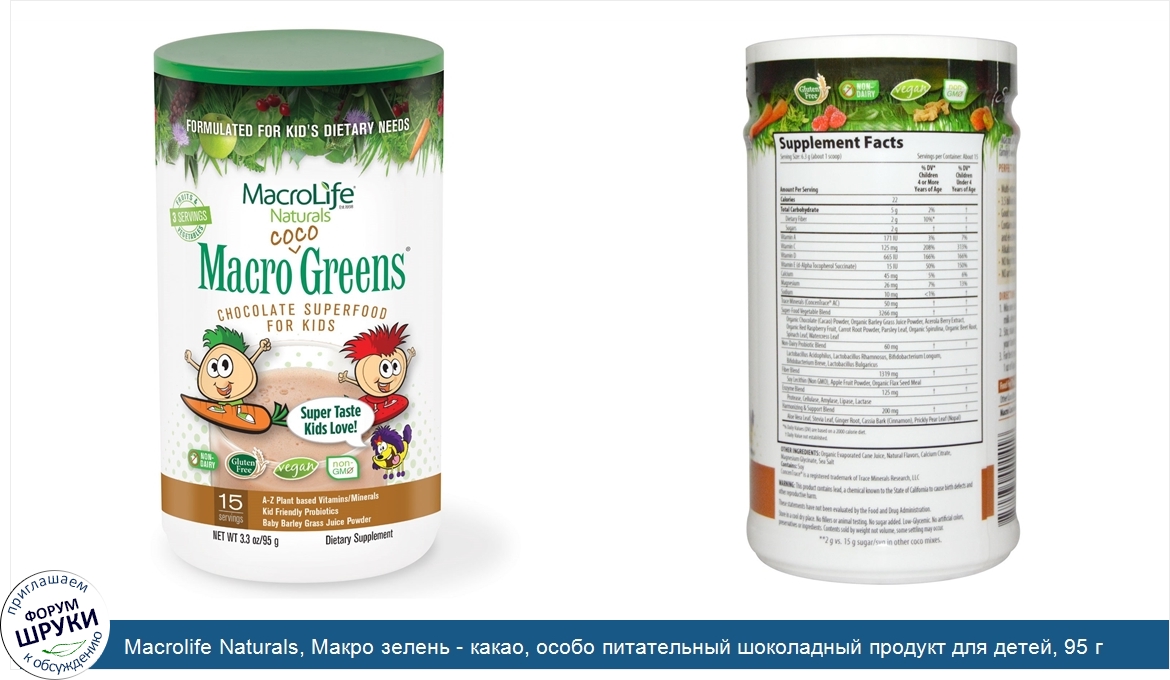 Друзья, если у вас есть отзыв/дополнение/комментарий/вопрос относительно Macrolife Naturals, Макро зелень - какао, особо питательный шоколадный продукт для детей, 95 г (3,3 унции) - напишите его ответом в эту тему (это будет полезно всему сообществу в целом и вам в отдельности).