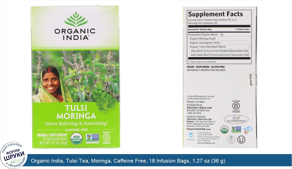 Друзья, если у вас есть отзыв/дополнение/комментарий/вопрос относительно Organic India, Tulsi Tea, Moringa, Caffeine Free, 18 Infusion Bags, 1.27 oz (36 g) - напишите его ответом в эту тему (это будет полезно всему сообществу в целом и вам в отдельности).