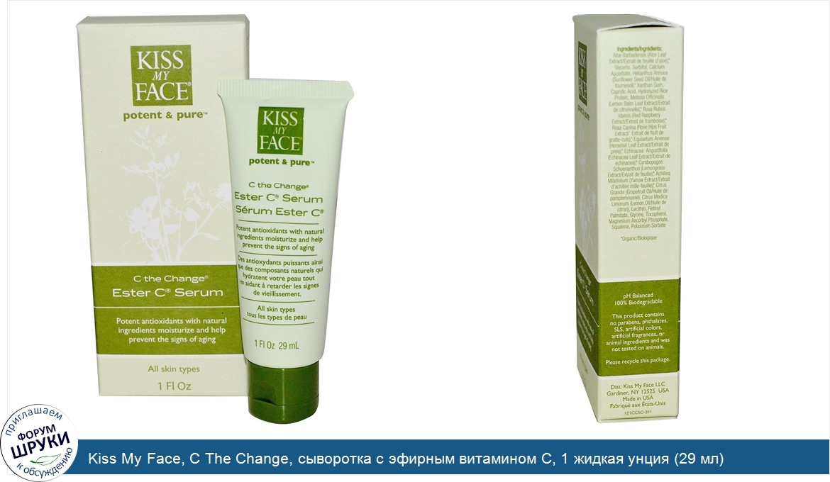 Друзья, если у вас есть отзыв/дополнение/комментарий/вопрос относительно Kiss My Face, C The Change, сыворотка с эфирным витамином C, 1 жидкая унция (29 мл) - напишите его ответом в эту тему (это будет полезно всему сообществу в целом и вам в отдельности).