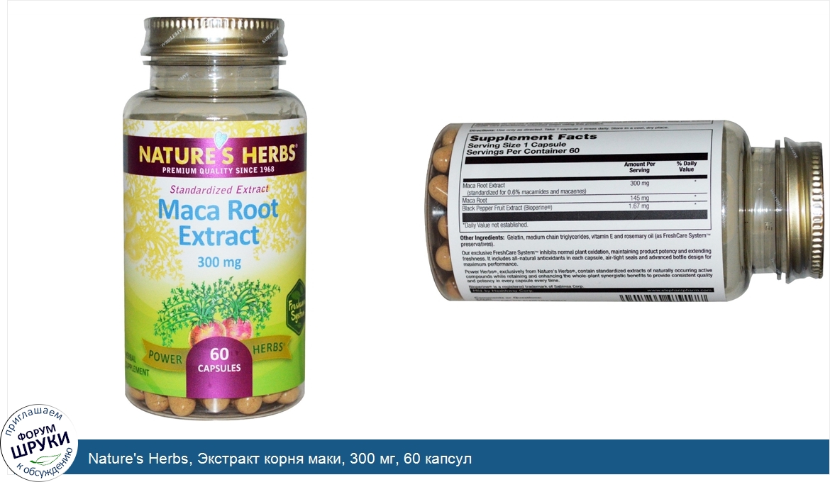 Друзья, если у вас есть отзыв/дополнение/комментарий/вопрос относительно Nature's Herbs, Экстракт корня маки, 300 мг, 60 капсул - напишите его ответом в эту тему (это будет полезно всему сообществу в целом и вам в отдельности).