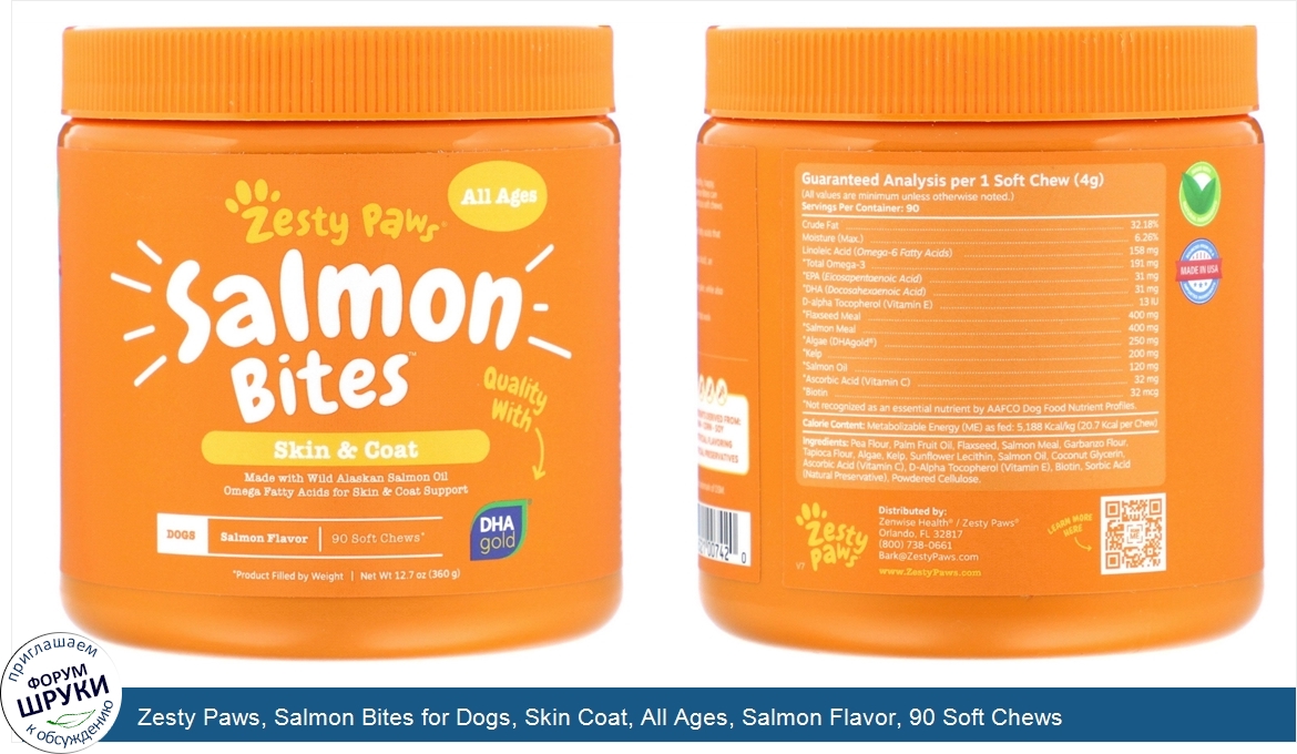 Друзья, если у вас есть отзыв/дополнение/комментарий/вопрос относительно Zesty Paws, Salmon Bites for Dogs, Skin Coat, All Ages, Salmon Flavor, 90 Soft Chews - напишите его ответом в эту тему (это будет полезно всему сообществу в целом и вам в отдельности).