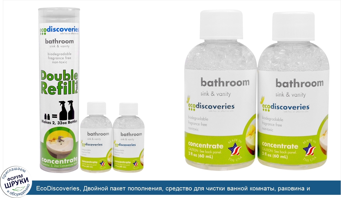 ru EcoDiscoveries, Двойной пакет пополнения, средство для чистки ванной комнаты, раковина и туалетный столик, по 2 жидк. унц. (60 мл) каждый