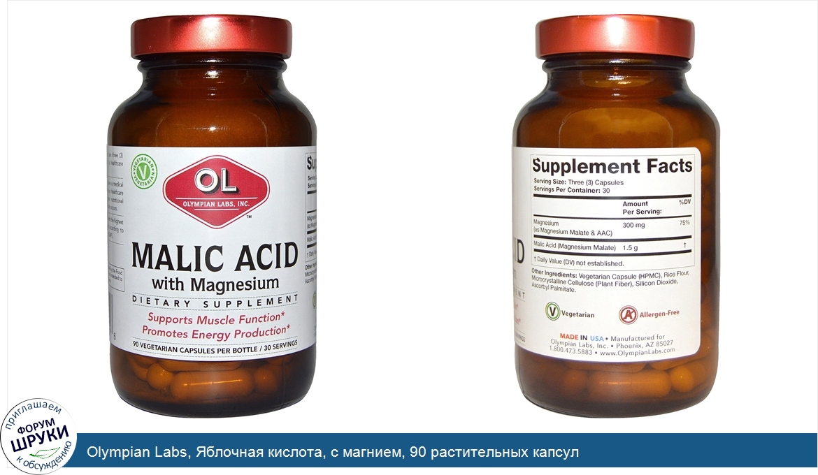 Друзья, если у вас есть отзыв/дополнение/комментарий/вопрос относительно Olympian Labs, Яблочная кислота, с магнием, 90 растительных капсул - напишите его ответом в эту тему (это будет полезно всему сообществу в целом и вам в отдельности).