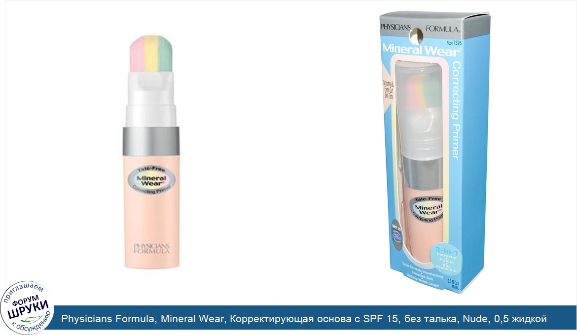Physicians Formula, Mineral Wear, Корректирующая основа с SPF 15, без талька, Nude, 0,5 жидкой унции (15 мл)