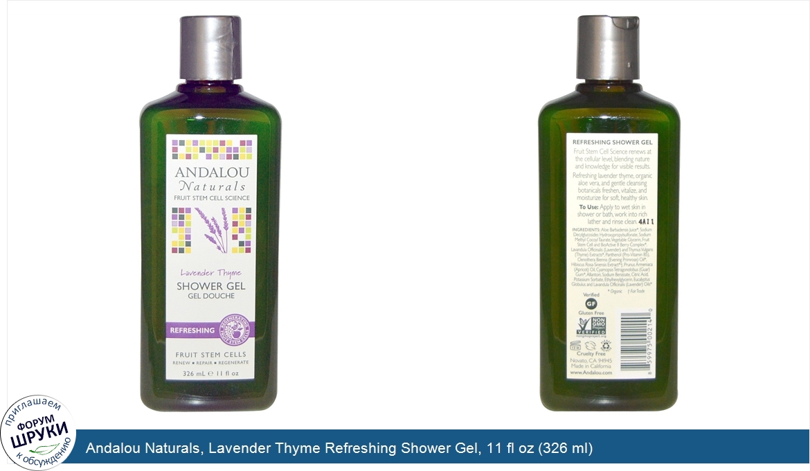 Andalou Naturals, Lavender Thyme Refreshing Shower Gel, 11 fl oz (326 ml)