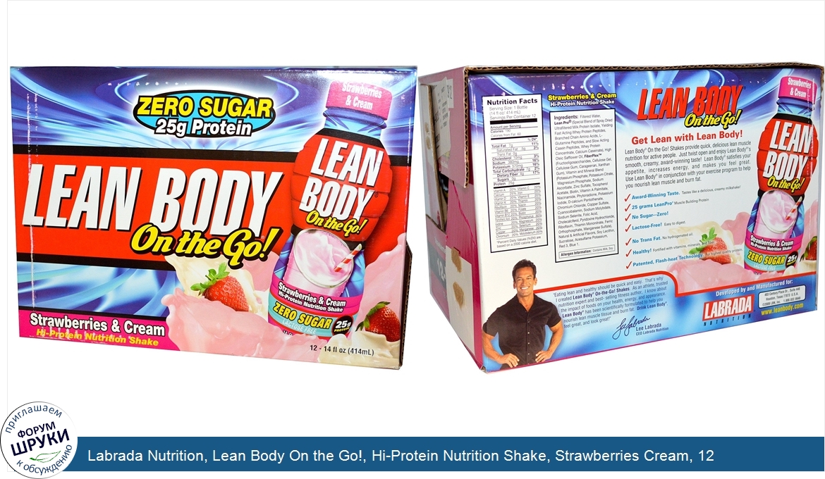 Друзья, если у вас есть отзыв/дополнение/комментарий/вопрос относительно Labrada Nutrition, Lean Body On the Go!, Hi-Protein Nutrition Shake, Strawberries Cream, 12 Shakes, 14 fl oz (414 ml) Each - напишите его ответом в эту тему (это будет полезно всему сообществу в целом и вам в отдельности).