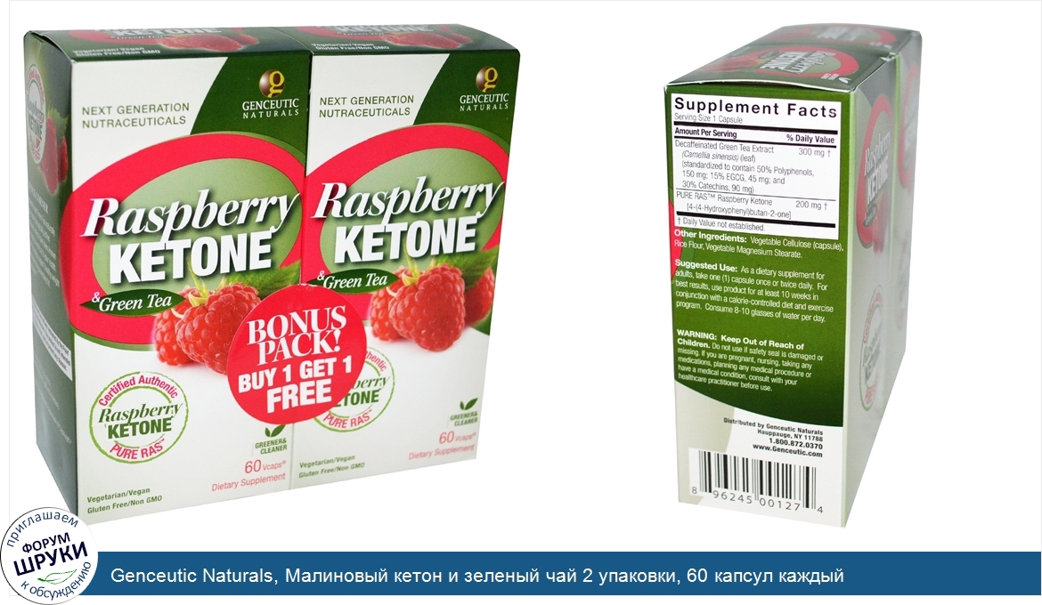 Genceutic Naturals, Малиновый кетон и зеленый чай 2 упаковки, 60 капсул каждый