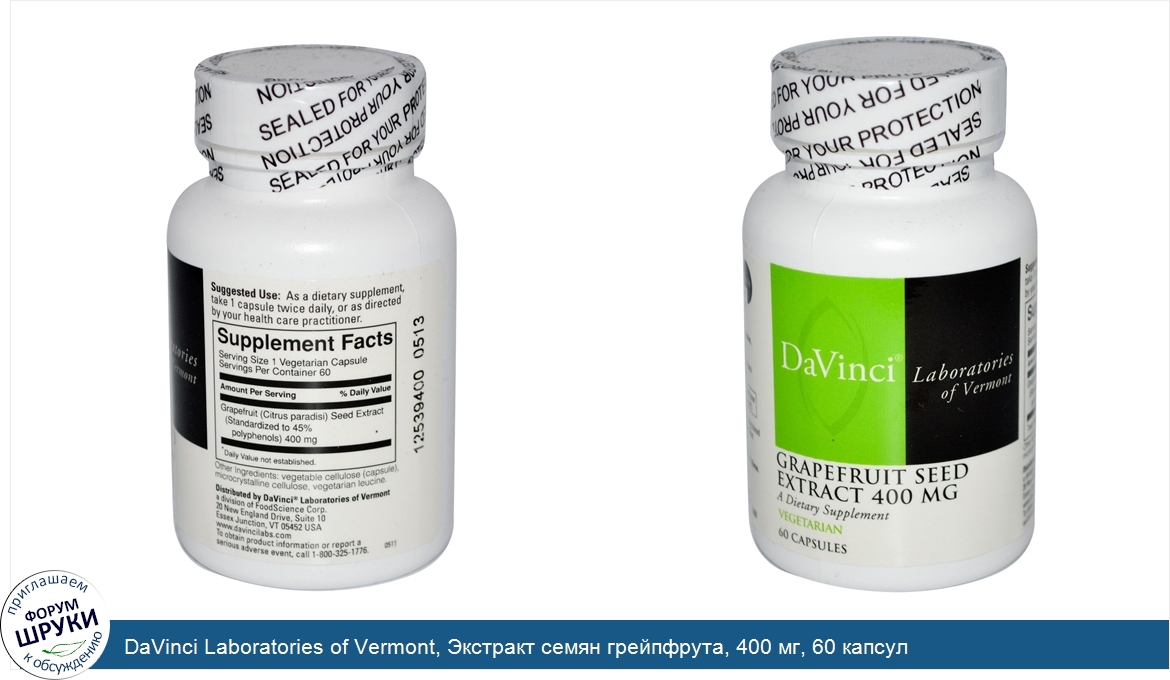 DaVinci Laboratories of Vermont, Экстракт семян грейпфрута, 400 мг, 60 капсул