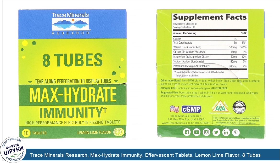 Друзья, если у вас есть отзыв/дополнение/комментарий/вопрос относительно Trace Minerals Research, Max-Hydrate Immunity, Effervescent Tablets, Lemon Lime Flavor, 8 Tubes, 10 Tablets Each - напишите его ответом в эту тему (это будет полезно всему сообществу в целом и вам в отдельности).