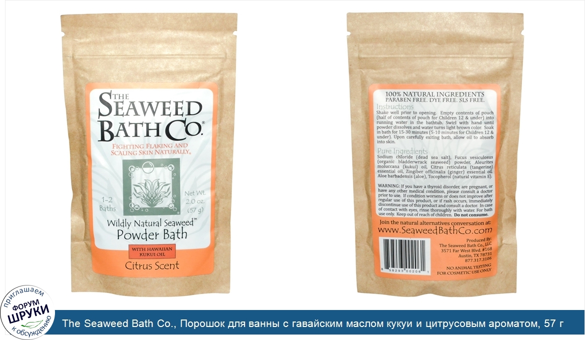 Друзья, если у вас есть отзыв/дополнение/комментарий/вопрос относительно The Seaweed Bath Co., Порошок для ванны с гавайским маслом кукуи и цитрусовым ароматом, 57 г - напишите его ответом в эту тему (это будет полезно всему сообществу в целом и вам в отдельности).