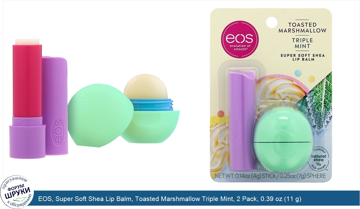EOS, Super Soft Shea Lip Balm, Toasted Marshmallow Triple Mint, 2 Pack, 0.39 oz (11 g)