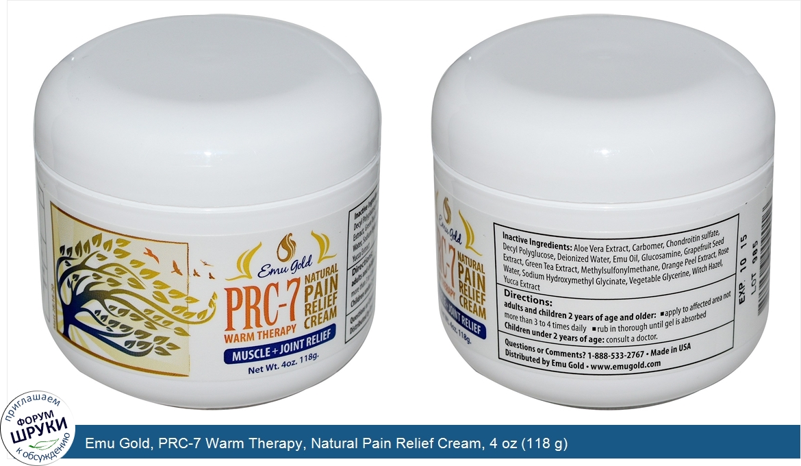 Друзья, если у вас есть отзыв/дополнение/комментарий/вопрос относительно Emu Gold, PRC-7 Warm Therapy, Natural Pain Relief Cream, 4 oz (118 g) - напишите его ответом в эту тему (это будет полезно всему сообществу в целом и вам в отдельности).
