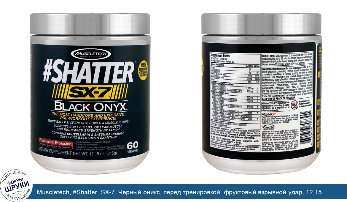 Muscletech, #Shatter, SX-7, Черный оникс, перед тренировкой, фруктовый взрывной удар, 12,15 унций (345 г)
