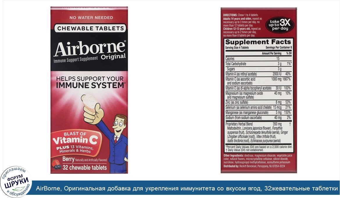 AirBorne, Оригинальная добавка для укрепления иммунитета со вкусом ягод, 32жевательные таблетки