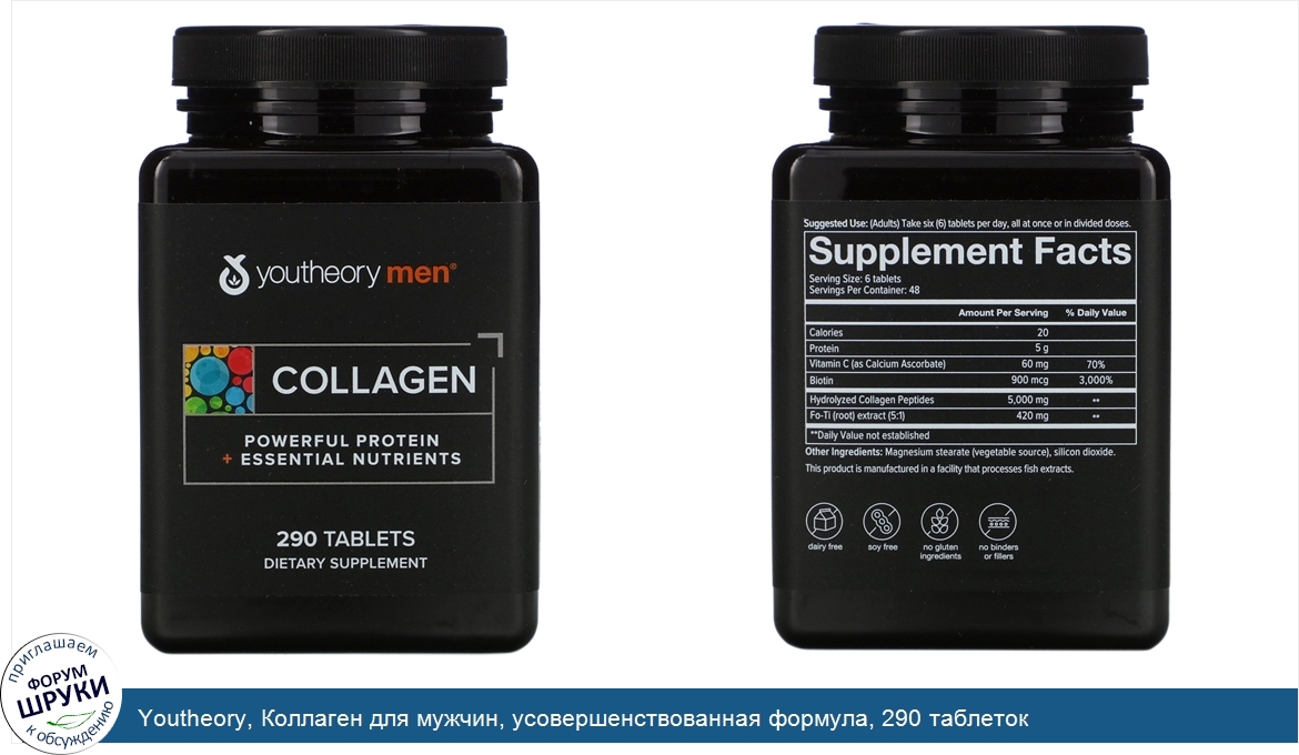 Друзья, если у вас есть отзыв/дополнение/комментарий/вопрос относительно Youtheory, Коллаген для мужчин, усовершенствованная формула, 290 таблеток - напишите его ответом в эту тему (это будет полезно всему сообществу в целом и вам в отдельности).