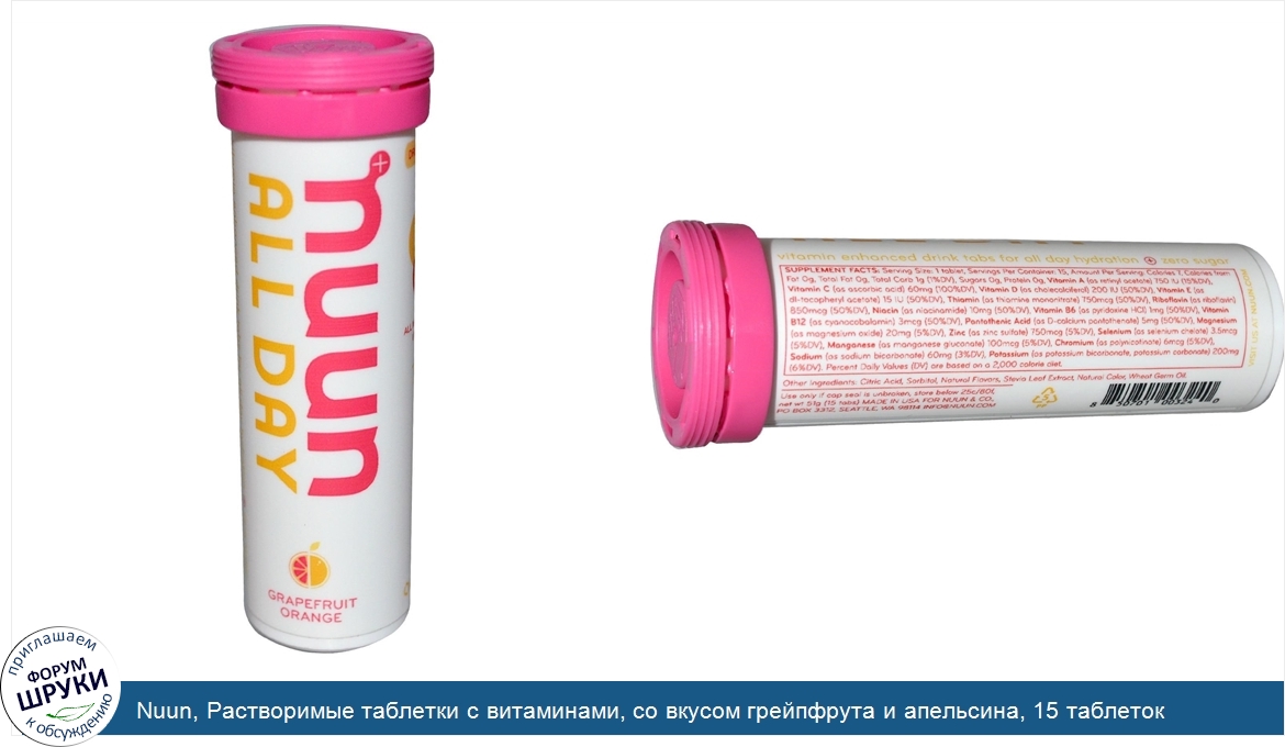 Nuun, Растворимые таблетки с витаминами, со вкусом грейпфрута и апельсина, 15 таблеток