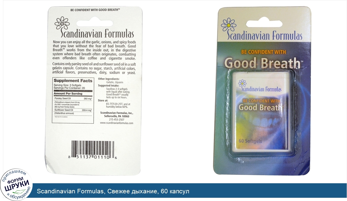 Друзья, если у вас есть отзыв/дополнение/комментарий/вопрос относительно Scandinavian Formulas, Свежее дыхание, 60 капсул - напишите его ответом в эту тему (это будет полезно всему сообществу в целом и вам в отдельности).