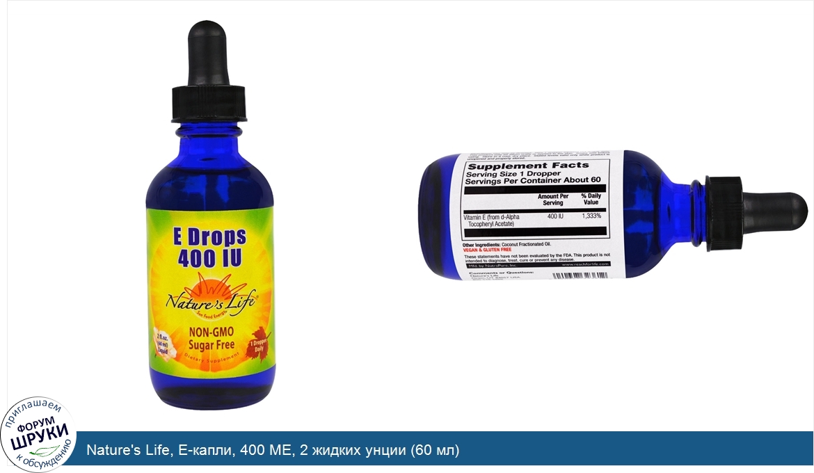 Nature's Life, E-капли, 400 МЕ, 2 жидких унции (60 мл)