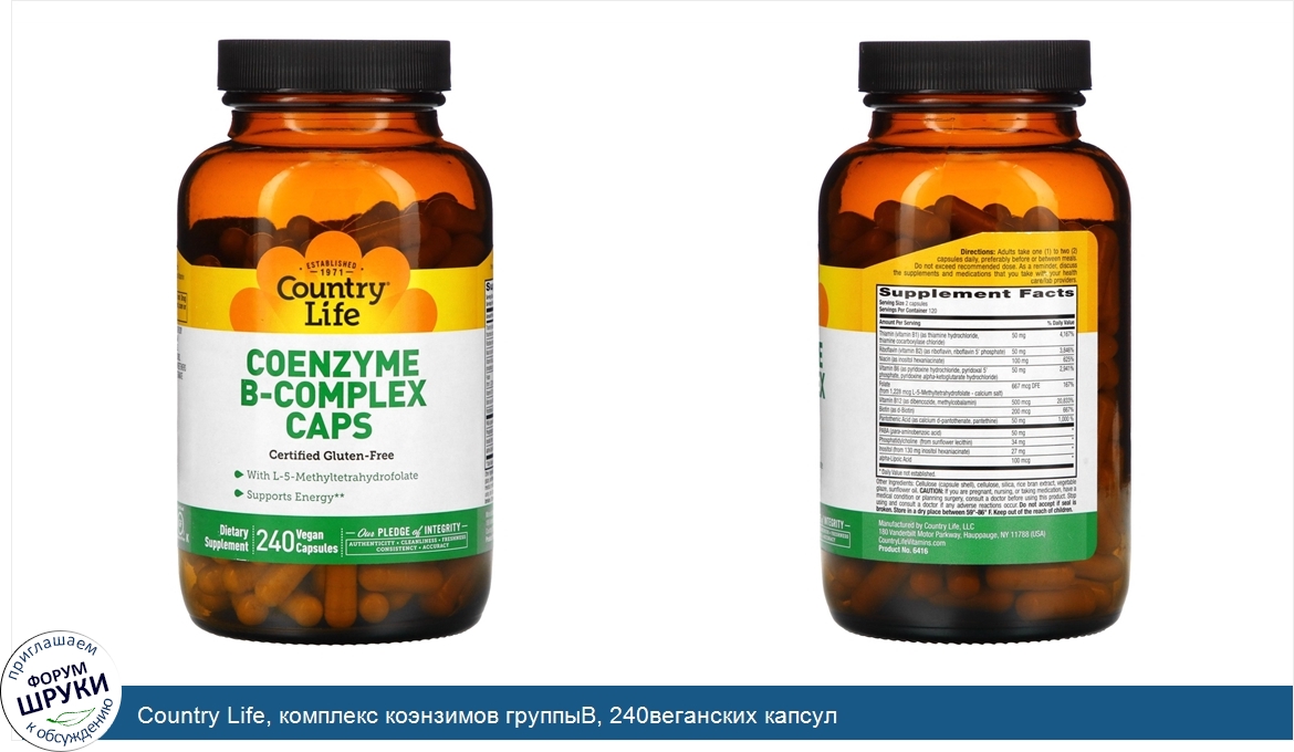 Country Life, комплекс коэнзимов группыB, 240веганских капсул