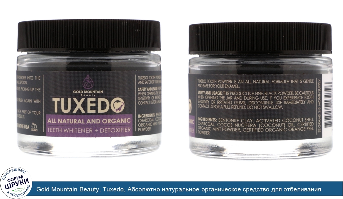 Gold Mountain Beauty, Tuxedo, Абсолютно натуральное органическое средство для отбеливания зубов+ удаление токсинов, 32 г