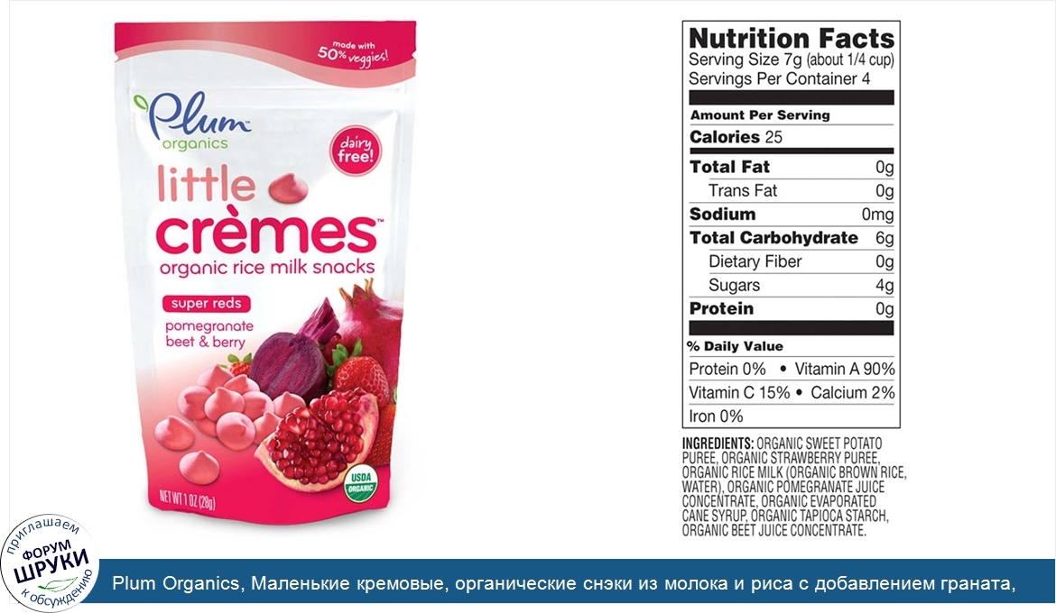 Друзья, если у вас есть отзыв/дополнение/комментарий/вопрос относительно Plum Organics, Маленькие кремовые, органические снэки из молока и риса с добавлением граната, свеклы и ягод, 1 унция (28 г) - напишите его ответом в эту тему (это будет полезно всему сообществу в целом и вам в отдельности).