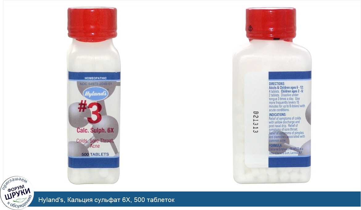 ru Hyland's, Кальция сульфат 6X, 500 таблеток