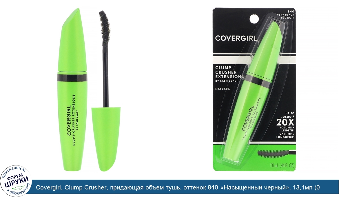 ru Covergirl, Clump Crusher, придающая объем тушь, оттенок 840 «Насыщенный черный», 13,1мл (0,44унции)