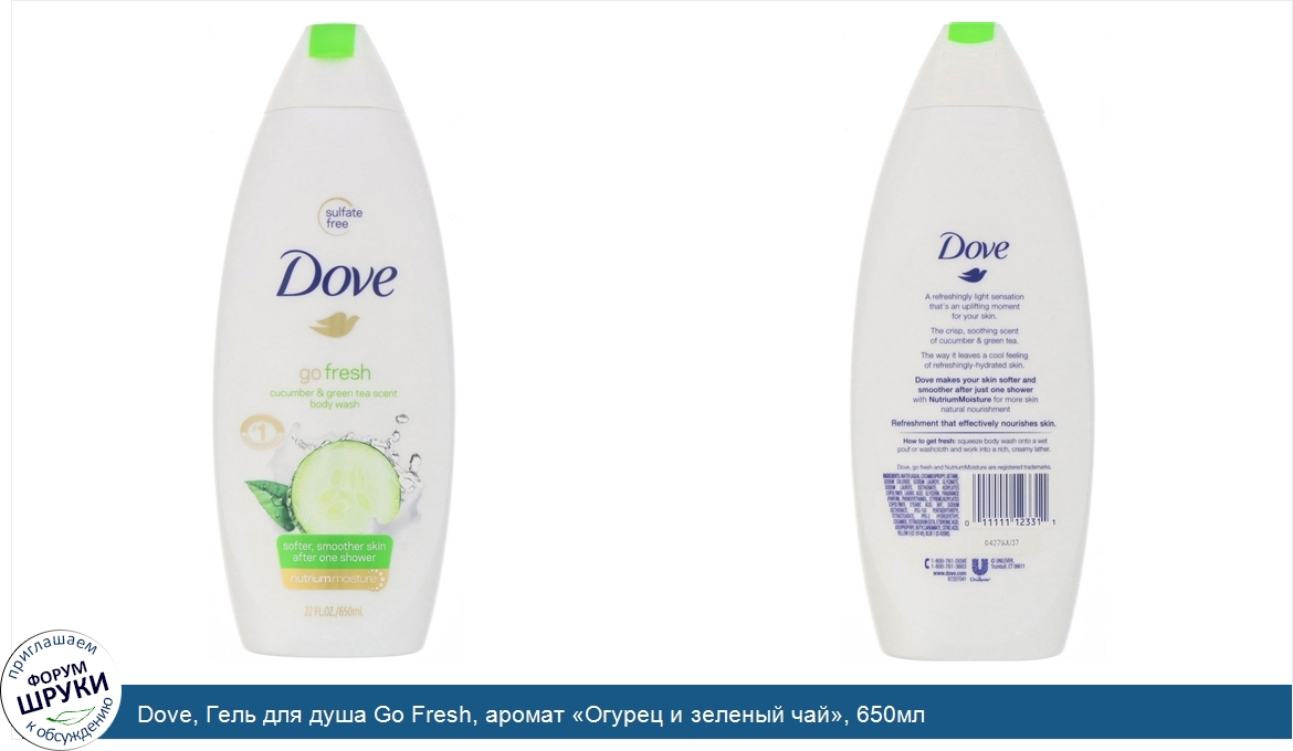Друзья, если у вас есть отзыв/дополнение/комментарий/вопрос относительно Dove, Гель для душа Go Fresh, аромат «Огурец и зеленый чай», 650мл - напишите его ответом в эту тему (это будет полезно всему сообществу в целом и вам в отдельности).