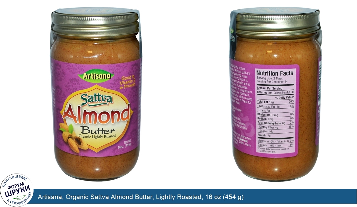 Друзья, если у вас есть отзыв/дополнение/комментарий/вопрос относительно Artisana, Organic Sattva Almond Butter, Lightly Roasted, 16 oz (454 g) - напишите его ответом в эту тему (это будет полезно всему сообществу в целом и вам в отдельности).