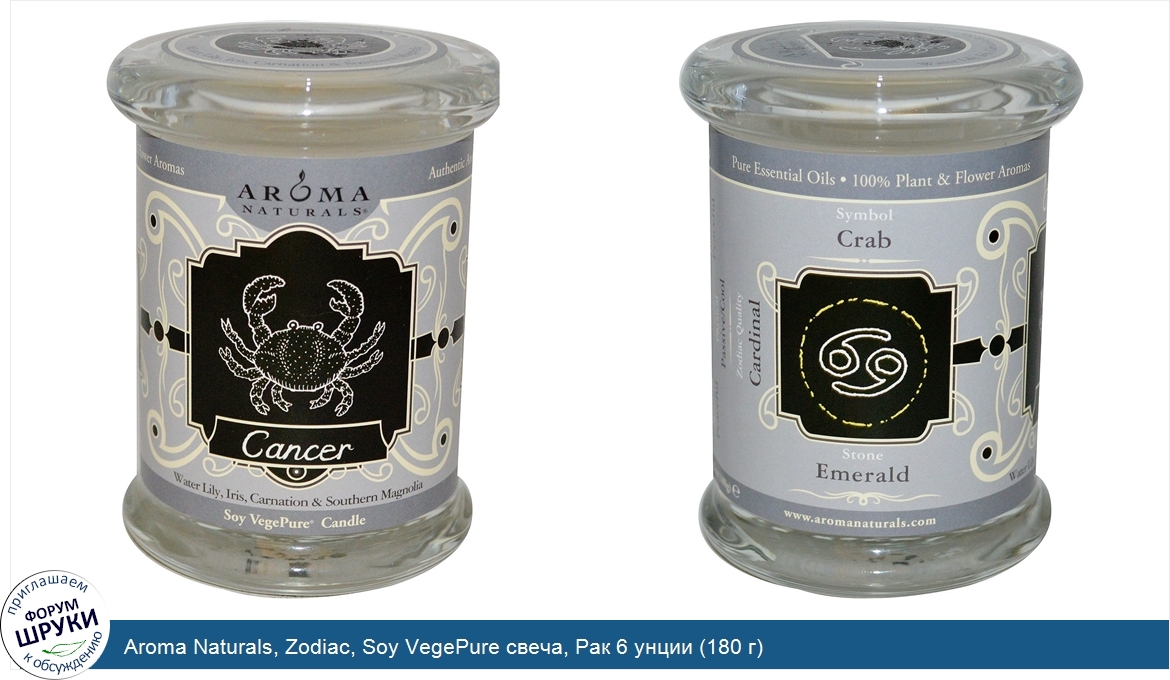 Aroma Naturals, Zodiac, Soy VegePure свеча, Рак 6 унции (180 г)