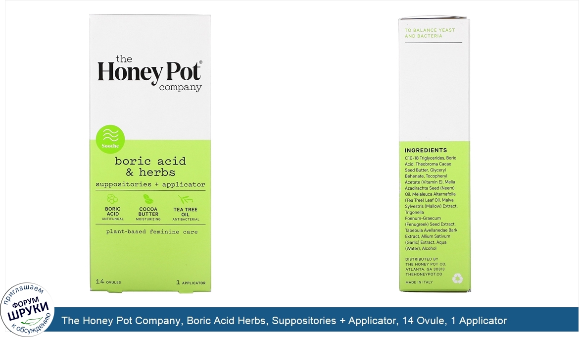 ru The Honey Pot Company, Boric Acid Herbs, Suppositories + Applicator, 14 Ovule, 1 Applicator