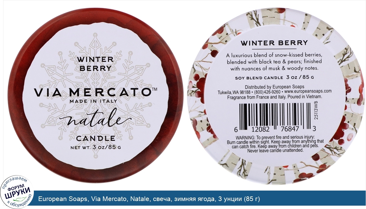 Друзья, если у вас есть отзыв/дополнение/комментарий/вопрос относительно European Soaps, Via Mercato, Natale, свеча, зимняя ягода, 3 унции (85 г) - напишите его ответом в эту тему (это будет полезно всему сообществу в целом и вам в отдельности).