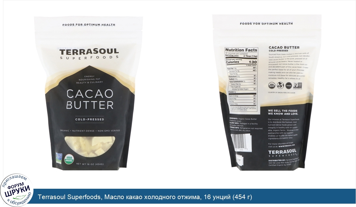 Друзья, если у вас есть отзыв/дополнение/комментарий/вопрос относительно Terrasoul Superfoods, Масло какао холодного отжима, 16 унций (454 г) - напишите его ответом в эту тему (это будет полезно всему сообществу в целом и вам в отдельности).