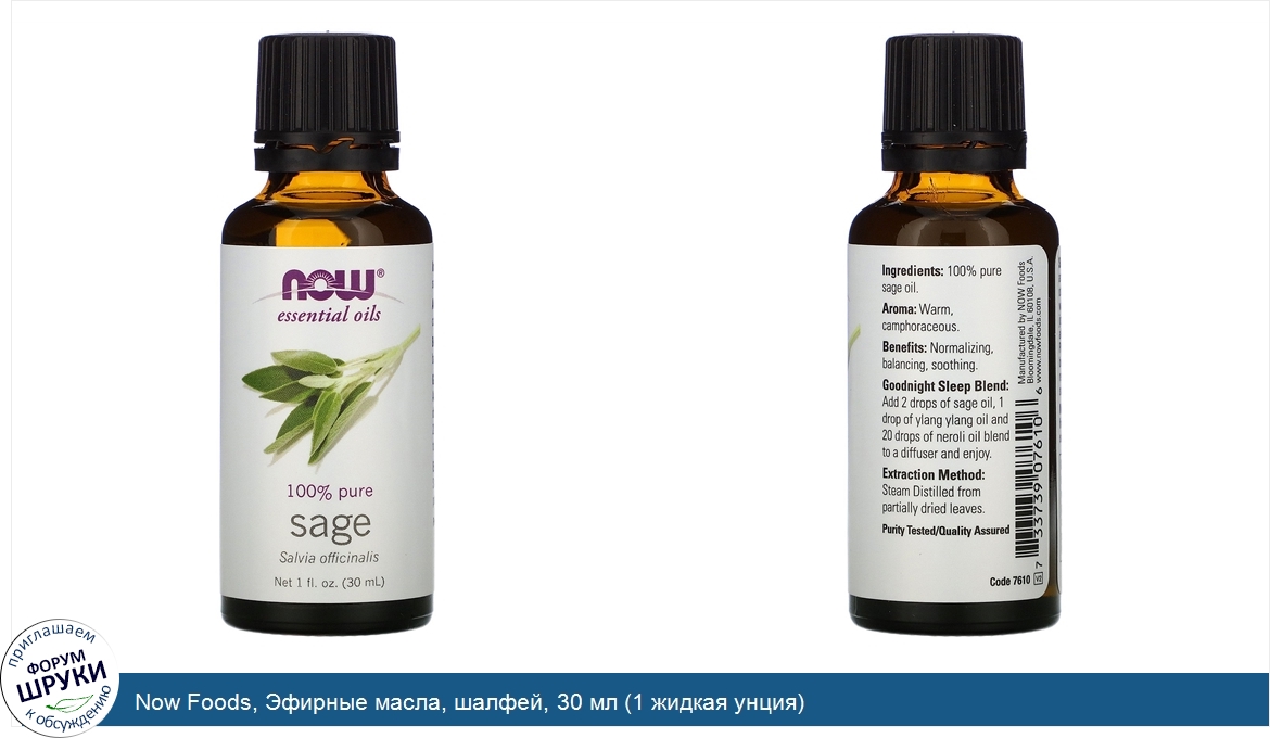 Now Foods, Эфирные масла, шалфей, 30 мл (1 жидкая унция)
