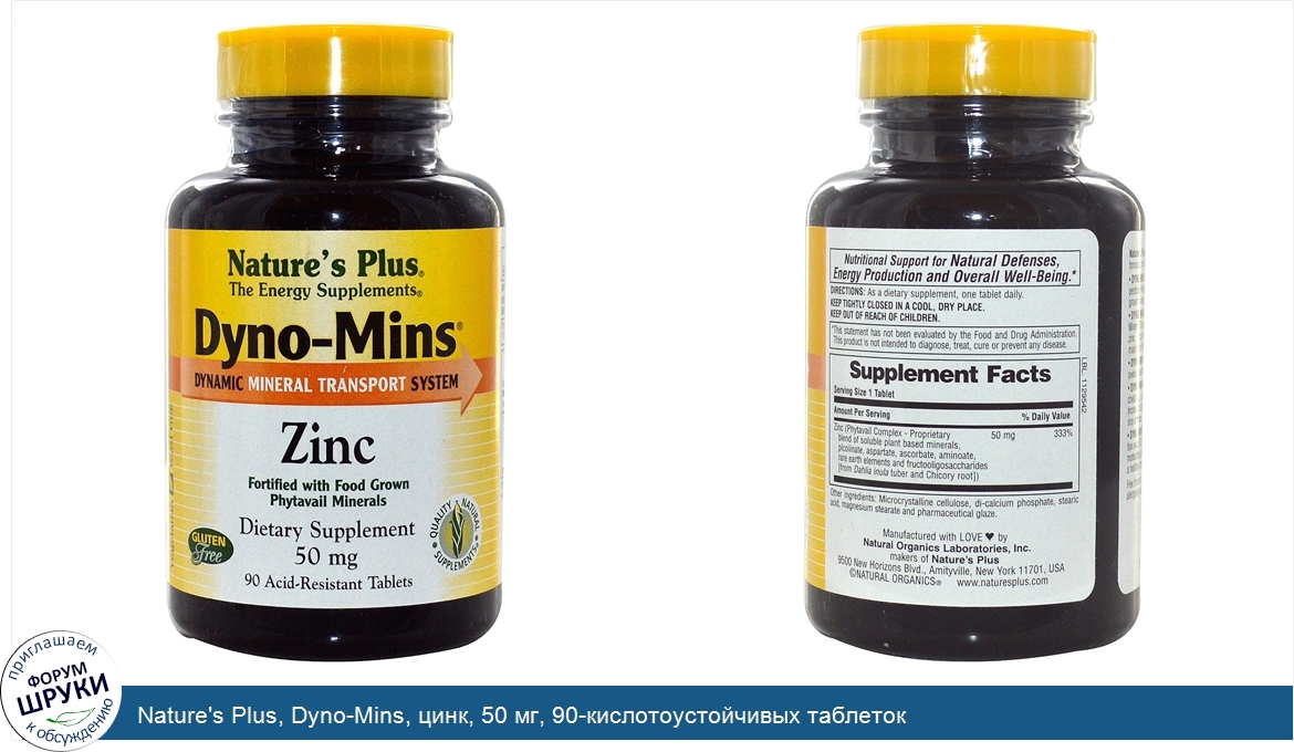 [DESCRIPT]The Energy Supplements. Dynamic Mineral Transport System. Fortified with Food Grown Phytavail Minerals. Dietary Supplement. Gluten Free. Quality Natural Supplements. Vegetarian. Yeast Free. Nutritional Support for Natural Defenses, Energy Production and Overall Well-Being. Nature's Plus Dyno-Mins Zinc is an exciting, revolutionary formulation offering peak mineral support: . Dyno-Mins Zinc supplies highest quality Phytavail Zinc from pesticide-free, hydroponically grown plants. Unlike other food grown minerals, Phytavail Zinc is 100% yeast-free. Dyno-Mins Zinc employs the exclusive Dyno-Mins Dynamic Mineral Transport System. Specific organic transporting agents for zinc, including aminoate, picolinate, aspartate and ascorbate, maximize Phytavail Zinc bioavailability and utilization. Dyno-Mins Zinc includes rare earth elements that are critical for overall health and well-being. Dyno-Mins Zinc contains true organically bound mineral chelates, specially coated with acid-resistant protection for increased absorption in the intestines. Mineral aminoates are brown rice chelates. Dyno-Mins Zinc enhances Phytavail Zinc absorption and utilization with FOS (fructooligosaccharides). This all-natural prebiotic promotes the growth of friendly intestinal bacteria and helps to maintain a healthy digestive environment.[/DESCRIPT]... (описание дополняется)