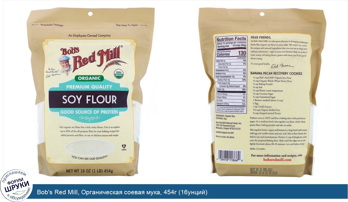 Друзья, если у вас есть отзыв/дополнение/комментарий/вопрос относительно Bob's Red Mill, Органическая соевая мука, 454г (16унций) - напишите его ответом в эту тему (это будет полезно всему сообществу в целом и вам в отдельности).