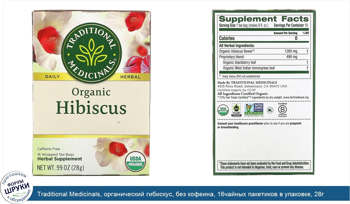 Друзья, если у вас есть отзыв/дополнение/комментарий/вопрос относительно Traditional Medicinals, органический гибискус, без кофеина, 16чайных пакетиков в упаковке, 28г (0,99унции) - напишите его ответом в эту тему (это будет полезно всему сообществу в целом и вам в отдельности).
