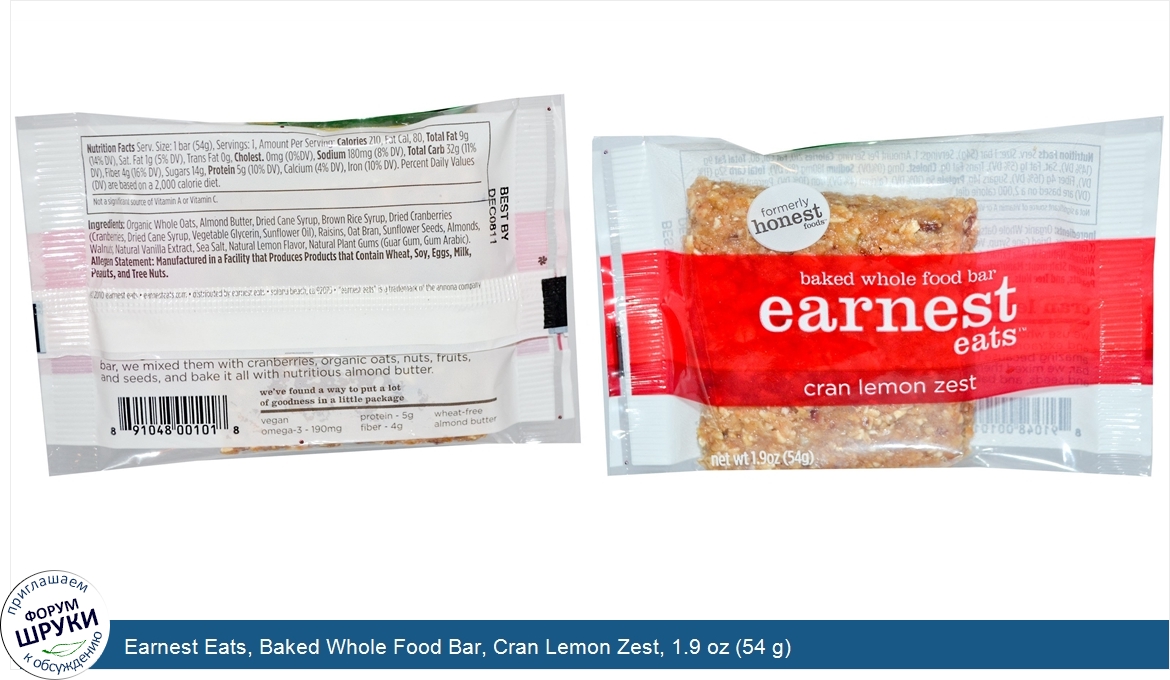 Друзья, если у вас есть отзыв/дополнение/комментарий/вопрос относительно Earnest Eats, Baked Whole Food Bar, Cran Lemon Zest, 1.9 oz (54 g) - напишите его ответом в эту тему (это будет полезно всему сообществу в целом и вам в отдельности).