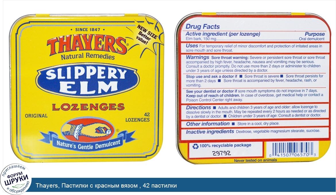 Thayers, Пастилки с красным вязом , 42 пастилки
