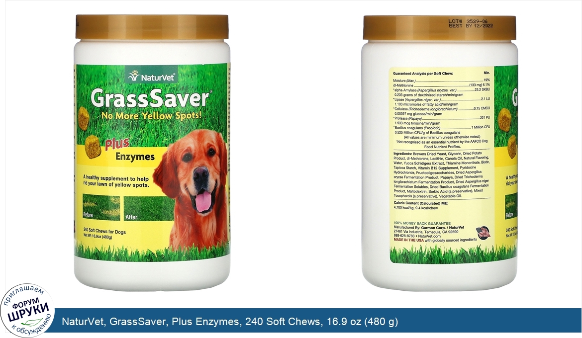ru NaturVet, GrassSaver, Plus Enzymes, 240 Soft Chews, 16.9 oz (480 g)