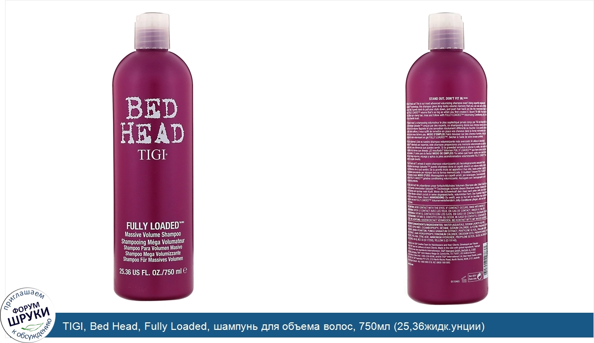 Друзья, если у вас есть отзыв/дополнение/комментарий/вопрос относительно TIGI, Bed Head, Fully Loaded, шампунь для объема волос, 750мл (25,36жидк.унции) - напишите его ответом в эту тему (это будет полезно всему сообществу в целом и вам в отдельности).