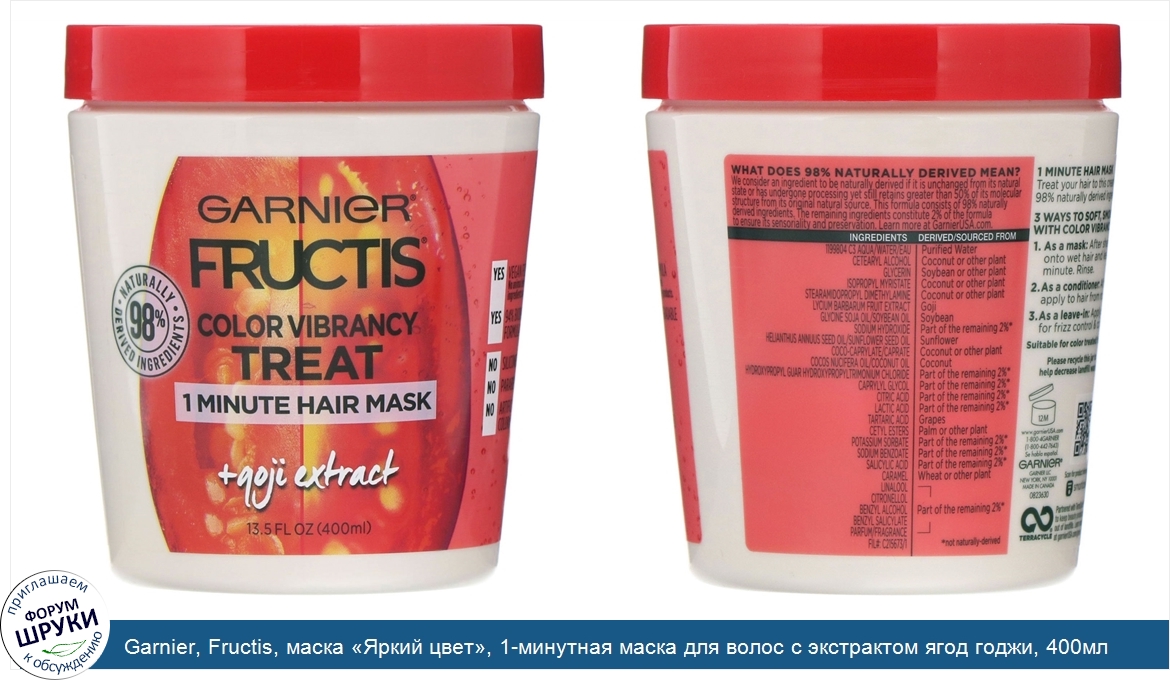 Garnier, Fructis, маска «Яркий цвет», 1-минутная маска для волос с экстрактом ягод годжи, 400мл