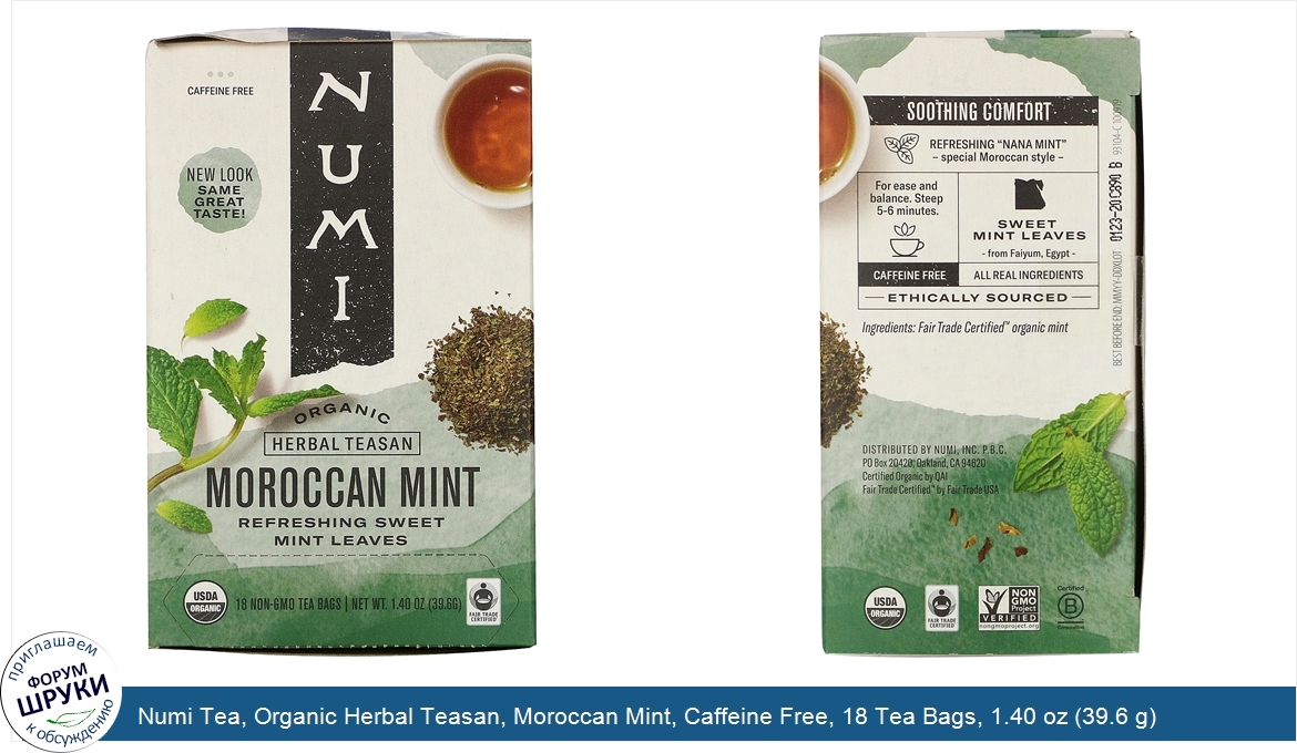 Друзья, если у вас есть отзыв/дополнение/комментарий/вопрос относительно Numi Tea, Organic Herbal Teasan, Moroccan Mint, Caffeine Free, 18 Tea Bags, 1.40 oz (39.6 g) - напишите его ответом в эту тему (это будет полезно всему сообществу в целом и вам в отдельности).