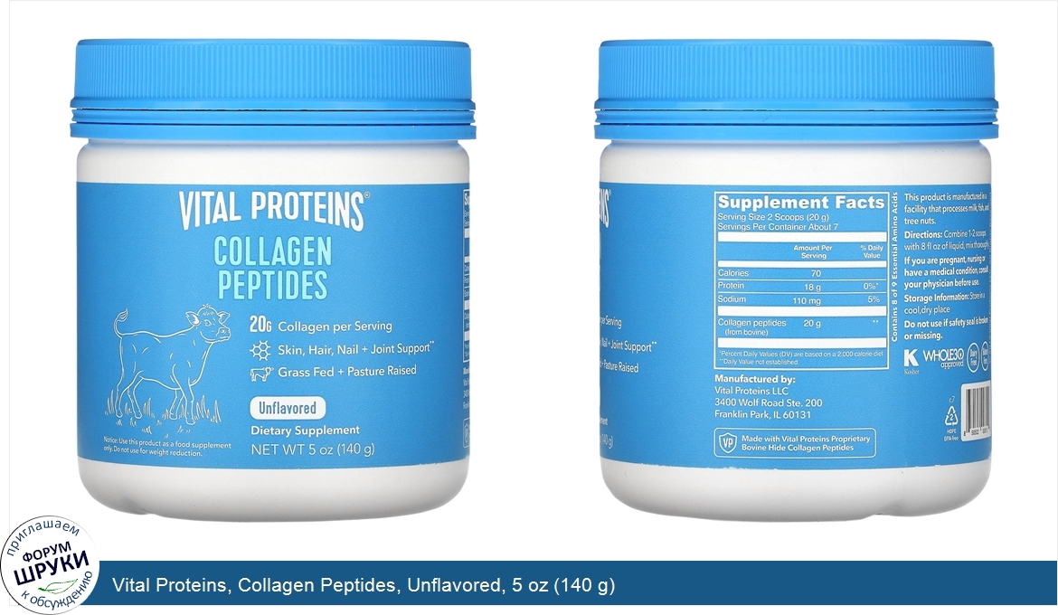Друзья, если у вас есть отзыв/дополнение/комментарий/вопрос относительно Vital Proteins, Collagen Peptides, Unflavored, 5 oz (140 g) - напишите его ответом в эту тему (это будет полезно всему сообществу в целом и вам в отдельности).