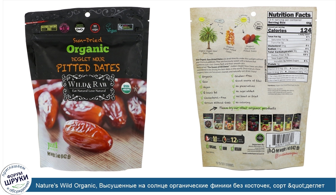 Друзья, если у вас есть отзыв/дополнение/комментарий/вопрос относительно Nature's Wild Organic, Высушенные на солнце органические финики без косточек, сорт "деглет нур", 5 унц. (142 г) - напишите его ответом в эту тему (это будет полезно всему сообществу в целом и вам в отдельности).