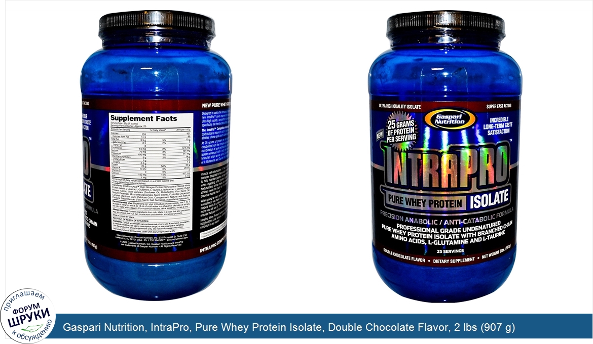 Друзья, если у вас есть отзыв/дополнение/комментарий/вопрос относительно Gaspari Nutrition, IntraPro, Pure Whey Protein Isolate, Double Chocolate Flavor, 2 lbs (907 g) - напишите его ответом в эту тему (это будет полезно всему сообществу в целом и вам в отдельности).