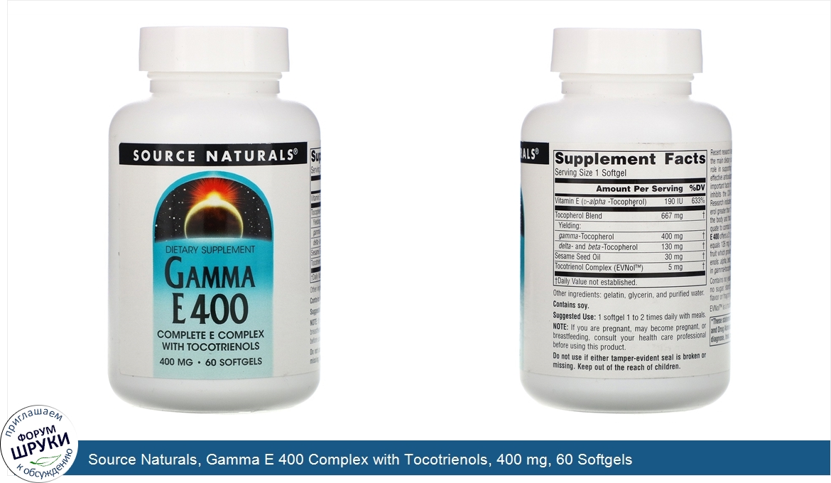 Друзья, если у вас есть отзыв/дополнение/комментарий/вопрос относительно Source Naturals, Gamma E 400 Complex with Tocotrienols, 400 mg, 60 Softgels - напишите его ответом в эту тему (это будет полезно всему сообществу в целом и вам в отдельности).